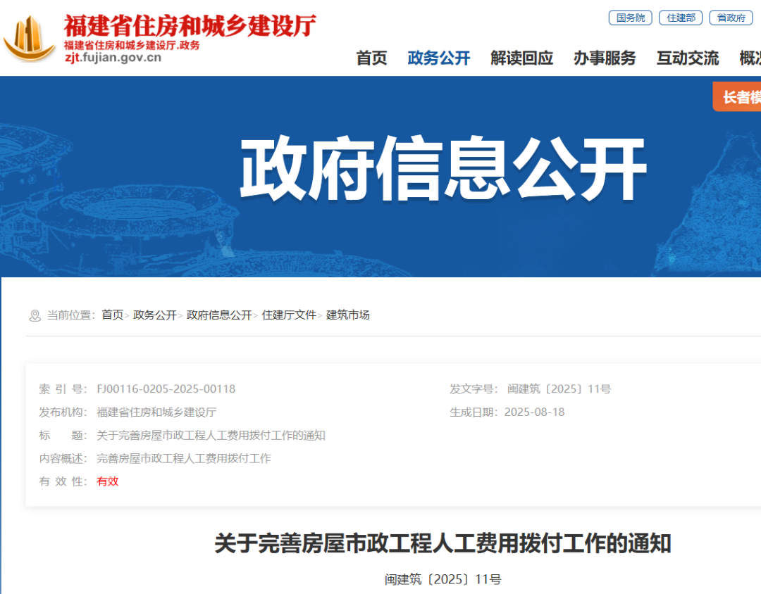 • 住建廳:關于人工費用撥付新規,自2025年10月1日起施行!2025-09-11